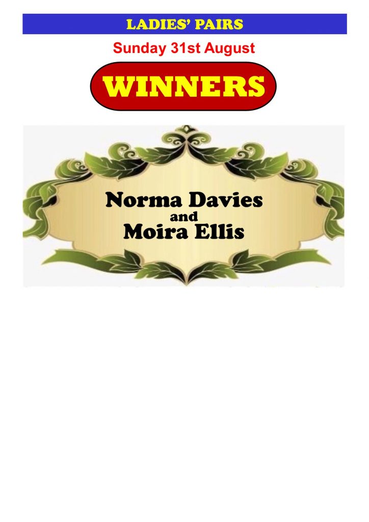 Sunday 31st August Ladies’ Pairs