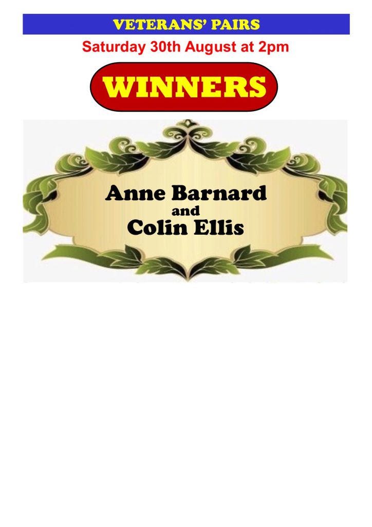 Saturday 30th August Vets Pairs